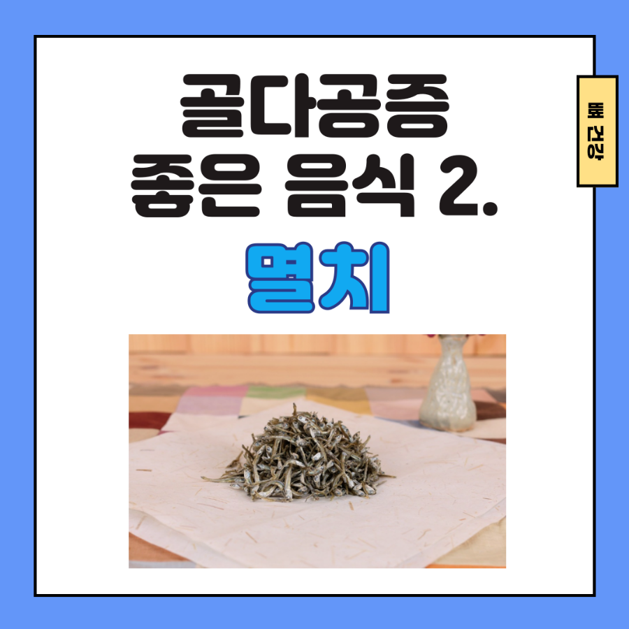 우리가 뼈 건강하면 많이 생각하는 식품 중 하나가 멸치입니다. 멸치에는 칼슘과 인, 단백질이 풍부하게 들어있어 뼈건강에 도움을 줍니다. 특히 칼슘이 많이 들어있는데 멸치 100g에는 칼슘이 620mg 함유되어 있는 고칼슘 함유 식품입니다.