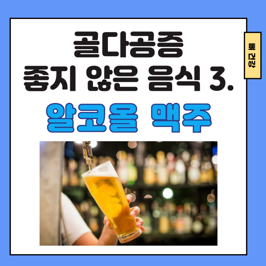 시원한 여름철에 마시는 맥주는 정말 그야말로 행복이죠. 그런데 이 맥주에 들어있는 알코올이 뼈를 만드는 세포를 죽입니다. 우리 뼈는 계속 생성되고 파괴되는 반복을 하게 되는데요. 뼈가 일을 많이 하게 되면 피로골절이 생기게 됩니다. 여기서 피로골절이란 반복적인 자극으로 뼈에 살짝 금이간 상태를 말합니다. 이렇게 손상되고 오래된 뼈는 파골세포가 와서 뼈를 없애는데요. 그리고 없어진 자리에 조골세포가 와서 새로운 뼈를 만들어줍니다. 이처럼 우리의 뼈는 평생동안 파괴되고 생성되는 과정을 반복하게 되는데요. 이 과정에서 술에 들어있는 알코올은 뼈를 만들어주는 조골세포를 죽이게 됩니다. 그럼 새롭게 만들어져야 하는 뼈는 생성되지 못하게 되겠죠. 그럼 계속해서 뼈 파괴만 일어나기 때문에 골다공증을 유발할 수 있습니다.