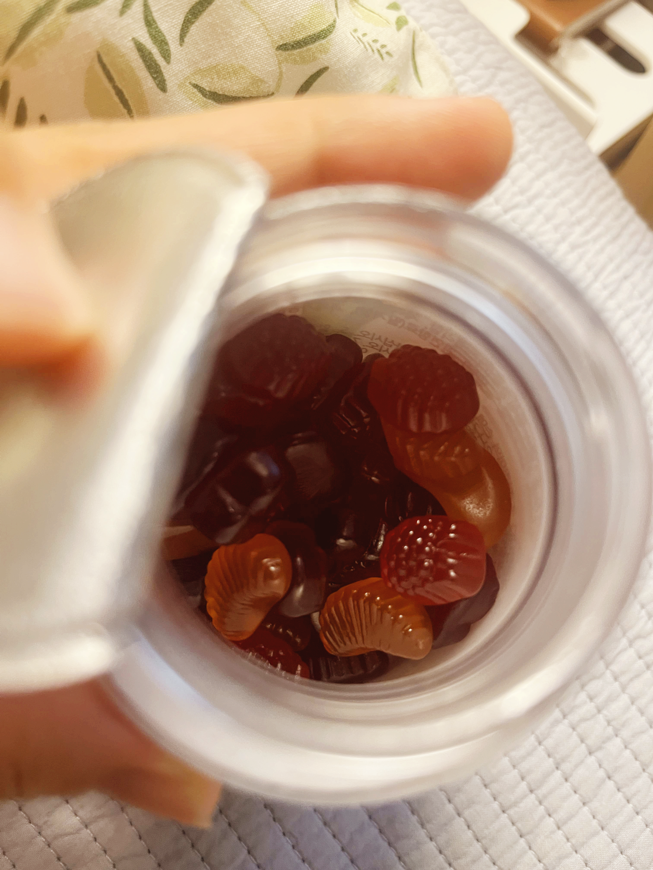 짠!! 정말 맛있어보이지 않나요? 맛도 색도 모양도 일반 구미 젤리랑 똑같아요! 생각보다 더 맛있고 비타민이라는 느낌이 안 들어요. 그래서 평소에 젤리를 잘 먹지 않는 저도 너무나 맛있게 먹고 있습니다 ㅎㅎ