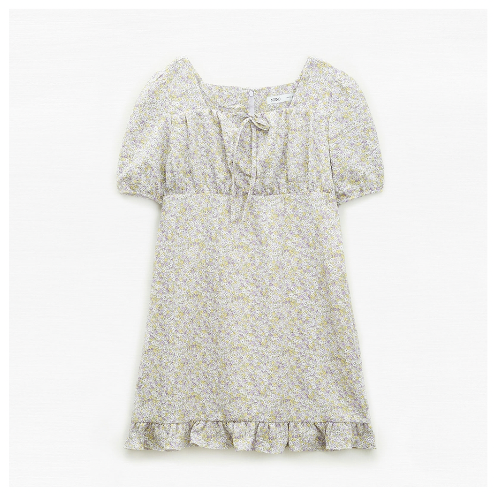 원피스 이름은 스퀘어넥 플라워 미니 원피스입니다. 코드명은 MIWOWD511G이며 가격은 69,900원입니다. 앞의 긴 기장의 원피스들과는 다르게 확실히 짧은 기장이 느껴집니다.
