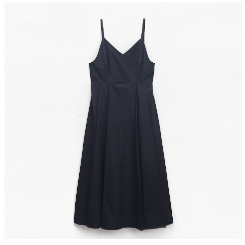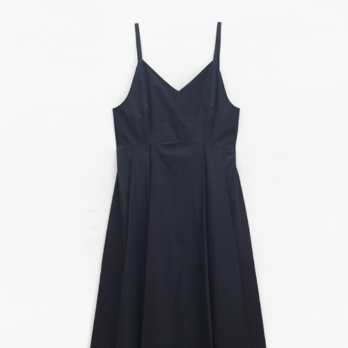 색상은 다크네이비 하나만 있습니다. 허리 라인을 잡아주고 브이라인으로 처리된 부분이 이 원피스의 포인트라고 생각합니다. 너무 밝지 않은 어두운 네이비 색상이라 어느 옷에도 잘 어울릴 것 같고 귀엽게 입을 수 있는 뷔스티에 원피스입니다. 흰 블라우스나 티셔츠, 하늘색이나 분홍색 블라우스에도 잘 어울릴 것 같아요.