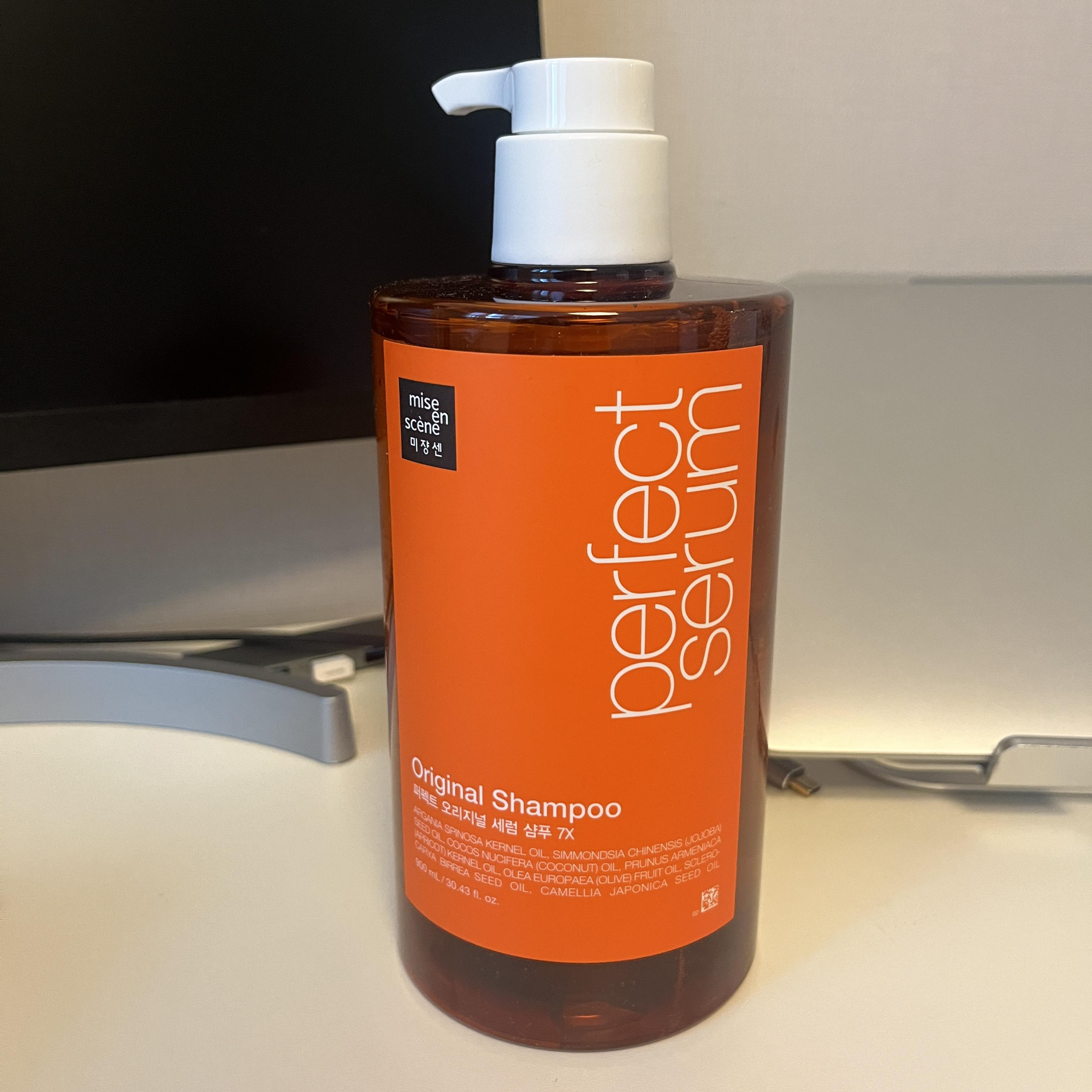 바로 미쟝센의 퍼펙트 오리지널 세럼 샴푸입니다..! 미장센 아주 유명한 헤어브랜드죠. 여기 헤어세럼에센스도 꽤나 유명한데요.