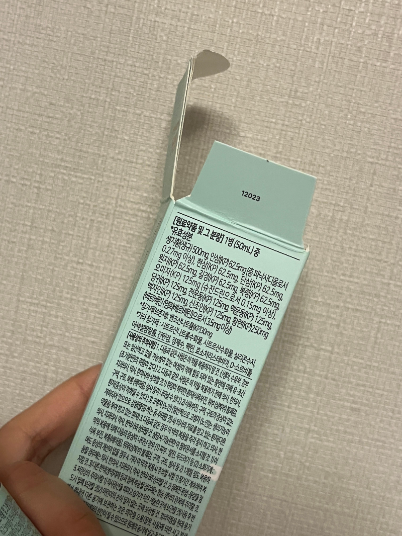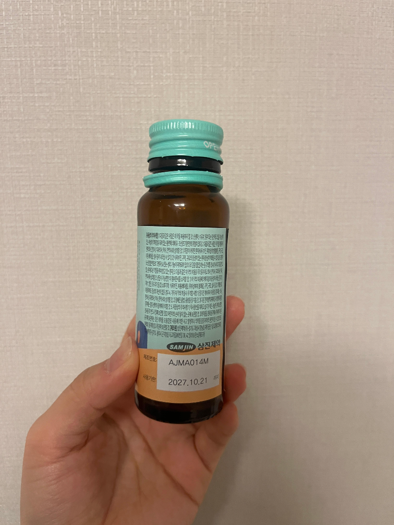 박스 포장을 열면 이렇게 병으로 된 안정액이 등장한다. 이미 원샷하고 사진을 찍어서 뜯어져 있음..ㅎㅎ