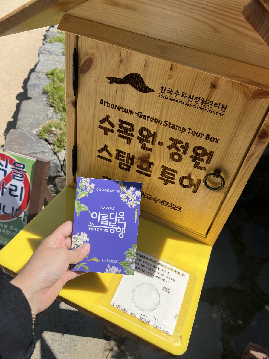 수목원 입구에는 이렇게 스탬프를 찍을 수 있는 곳이 있는데요. 저는 인천대공원 내에서 찍는 줄 알았는데 전국 수목원 스탬프투어더라구요ㅠㅠ