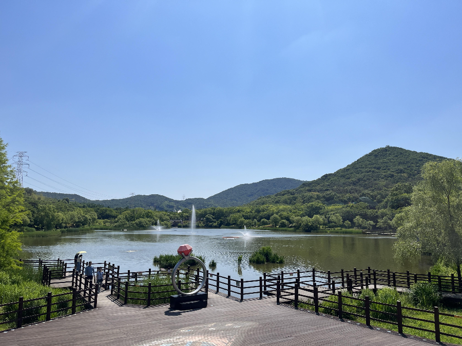 인천대공원 가운데 있는 큰 호수입니다. 인천대공원 시그니처라고 할 수도 있죠 ㅎㅎㅎ 이 날 미세먼지 하나 없는 맑은 날씨여서 얼마나 청명하고 예뻤는지 몰라요. 뒤에 있는 산과 호수가 너무 잘 어울리더라구요! 저 나무 데크길을 따라 걸으면 정말 힐링 최고입니다!