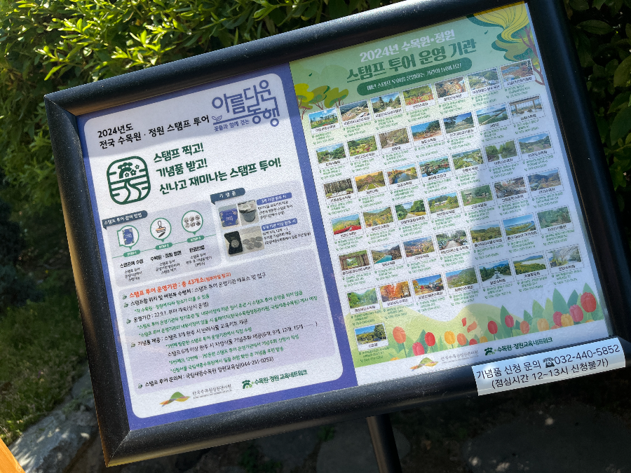 수목원 입구에는 이렇게 스탬프를 찍을 수 있는 곳이 있는데요. 저는 인천대공원 내에서 찍는 줄 알았는데 전국 수목원 스탬프투어더라구요ㅠㅠ