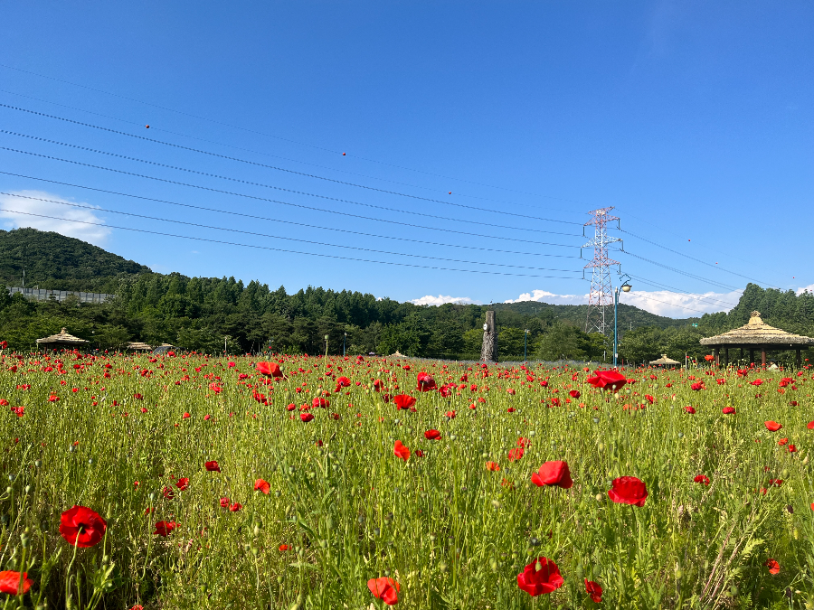 여기는 계절마다 개화하는 꽃들이 다른데요. 5~6월에는 꽃양귀비, 6~9월에는 수레국화, 8~9월에는 해바라기, 7~10월에는 메밀꽃이 핀다고 해요. 제가 갔을 때에는 꽃양귀비가 피어 있었어요. 예전에 메밀꽃 폈을 때 간 적이 있는데 진짜 너무너무 예뻐서 행복했던 기억이 있습니다. 메밀꽃 필 때도 강추할게요!!