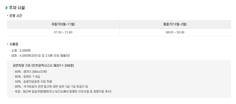 인천대공원 공원개방시간은 새벽 5시 ~ 밤 11시까지입니다. 동절기에는 저녁 10시까지라고 하네요. 공원안내소 운영시간은 9시부터 저녁 6시까지이며 유모차와 휠체어를 무료로 대여해준다고 합니다.