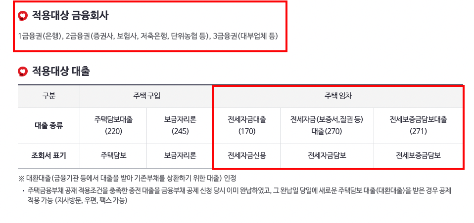 하지만 내가 현재 받고 있는 중기청 전세대출이나 버팀목전세대출같은 경우에는 주택도시기금에서 하고 있기 때문에 위의 적용대상 금융회사에 해당하지 않는다..ㅠㅠ 그렇기 때문에 주택도시기금 대출 종류인 중기청이나 버팀목 디딤돌 등은 건보료 공제를 받을 수 없다.