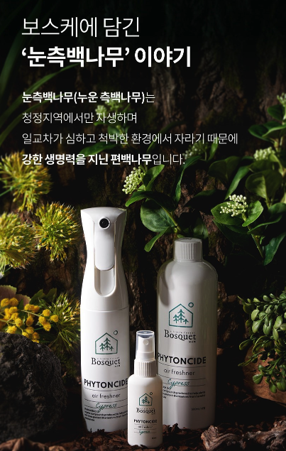 보스케 피톤치드는 천연소재인 눈측백나무 추출물로 만들어진 제품이라고 합니다. 편백나무는 익숙한데, 눈측백나무는 생소하시죠?
