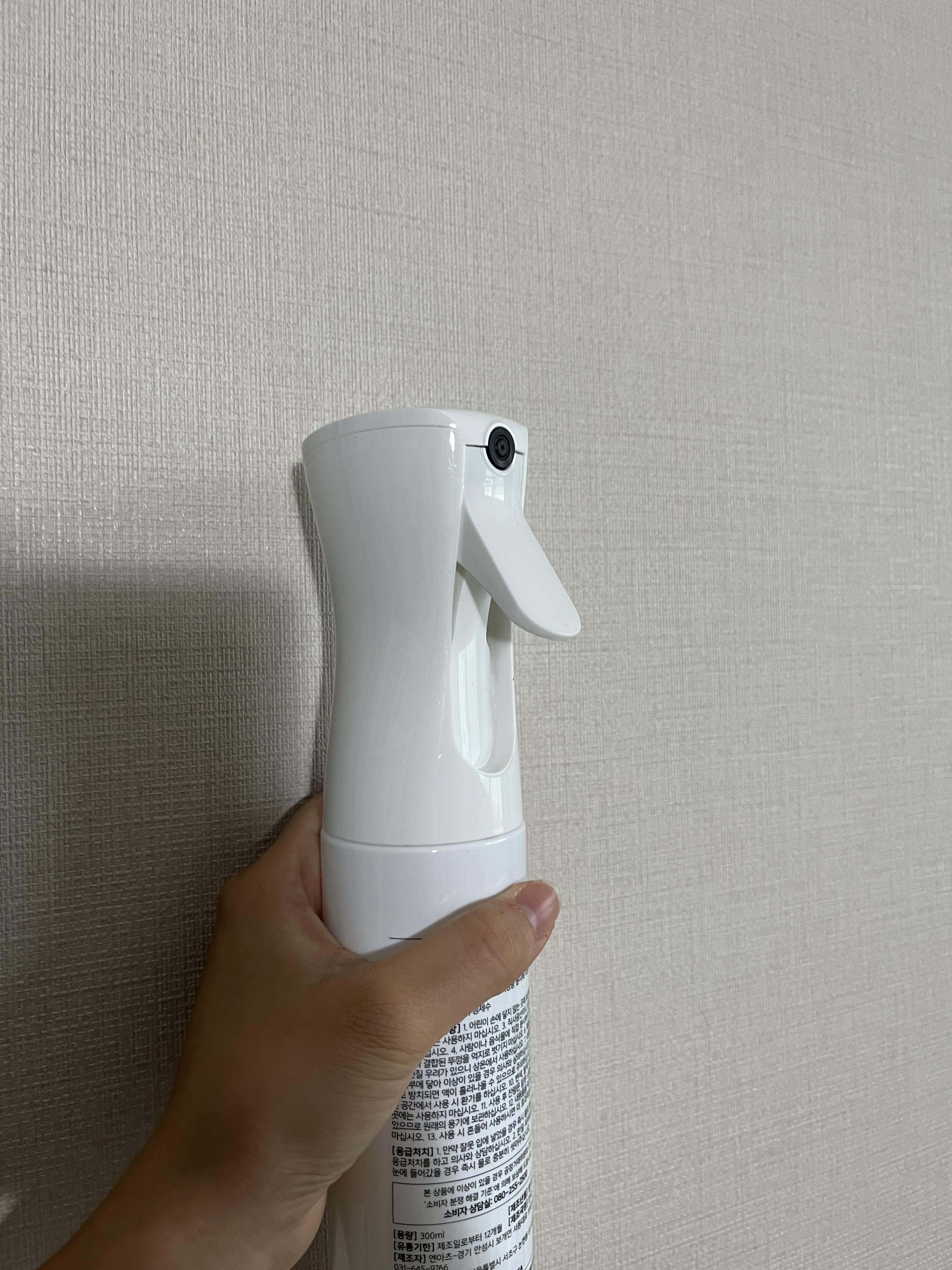 저기 저 손잡이 부분을 누르면 스프레이가 분사되는데요. 안개분사형이라 정말.. 입자가 고르게 많이 분사돼요..ㅋㅋㅋㅋ 저 손잡이만 한번 당기면 치이이이이익 하면서 꽤 많은 양이 골고루 분사되는데 저는 적게 뿌리고 싶으면 알아서 조절해서 사용하고 있어요.