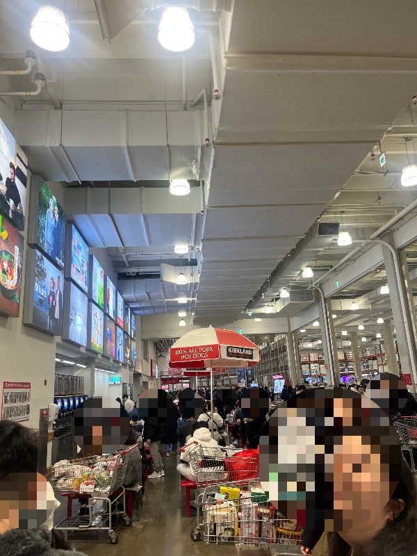 코스트코 푸드코트는 매장 들어와서 계산대 앞에 있습니다. 그래서 코스트코 회원이 아닌 분들도 이용이 가능하다고 하네요. 엄청나게 많은 사람들이 보이시나요...? 주말 오후라 그런지 사람이 정말 많았어요 ㅠㅠ