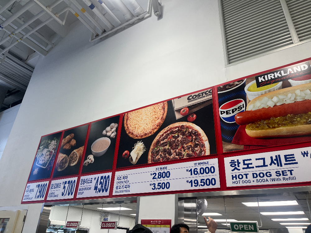 먼저 코스트코의 푸드코트 메뉴를 알아볼게요. 해당지점은 코스트코 송도점이었습니다.