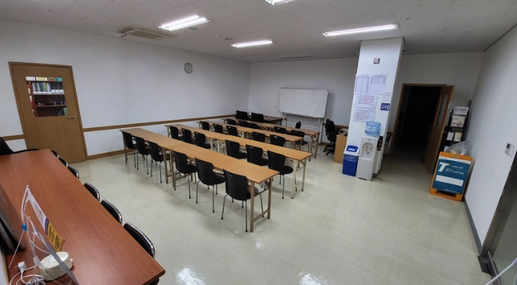 정암빌딩 지하2층으로 내려가면 문이 하나 나오는데요. 문을 열고 들어가면 응시자대기실이 있습니다. 응시자분들은 여기서 대기하다가 본인 순서가 되면 본인확인 등을 하고 시험을 치러 들어갑니다.