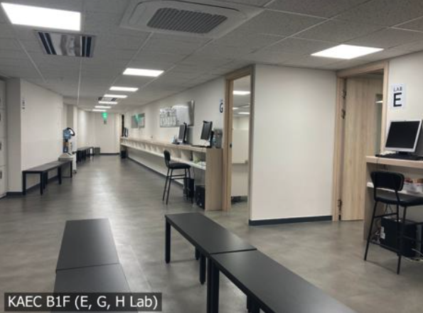 지하1층에는 E, G, H랩실이 있습니다. 지하1층 응시자대기실 모습입니다.