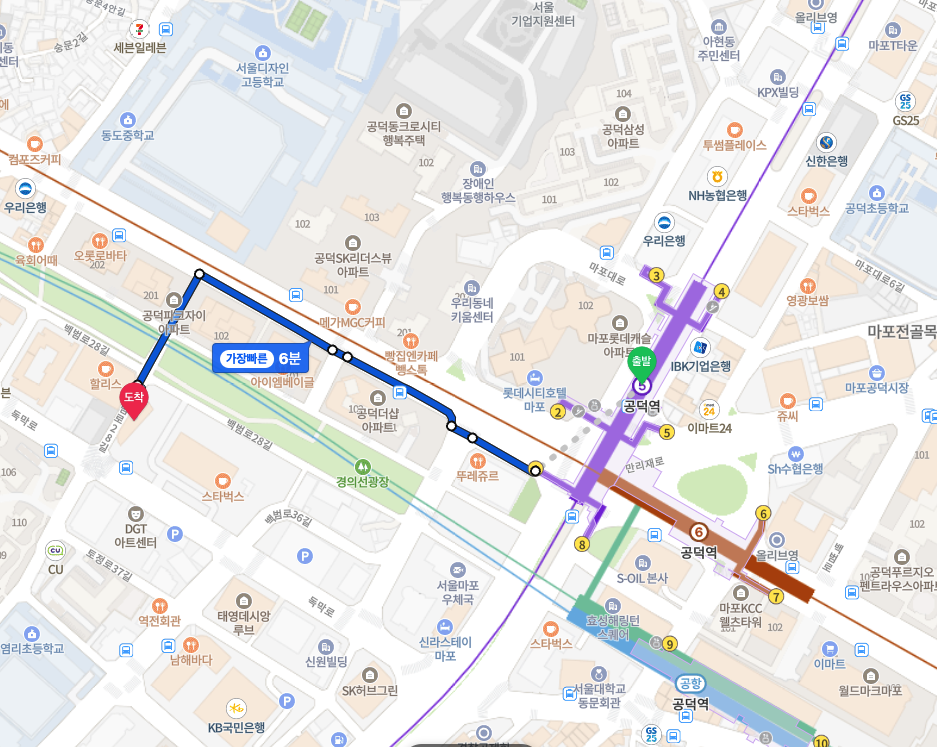대중교통은 좋은 편인데요. 지하철 5, 6호선, 경의중앙선, 공항철도 공덕역 1번 출구에서 도보 6분 거리로 교통편이 아주 좋은 편입니다. 그리고 지하철 6호선 대흥역에서도 걸어서 9분 거리로 6호선을 이용하시는 분들이라면 공덕역까지 가지 않아도 되니 좋습니다.