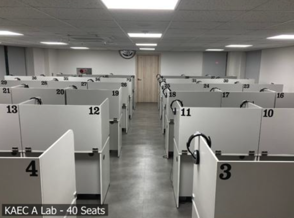한미교육위원단 토플시험장 규모는 총 245석으로 매우 큰 편인데요. 2층(A, B랩) , 1층(C, D랩), 지하1층(E, G, H랩)으로 이루어져 있습니다. 랩실별로 알아보도록 하겠습니다. 아래 시험장 내부 사진은 토플시험 공식 블로그에서 발췌하였습니다.