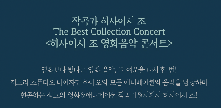 히사이시조 영화음악 콘서트에 대해 알아보았습니다. 관심있으신 분들은 예매하셔서 공연을 관람하시기 바랍니다.