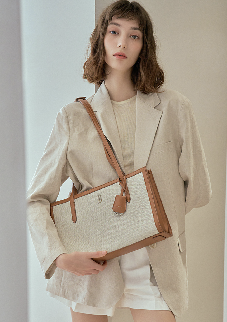 이 가방은 제이에스티나의 마노라인 가방인데요. 마노라인은 심플한 디자인과 은은한 광택감이 느껴지는 소재의 조화를 이루고 있으며 모던하면서도 캐주얼한 분위기를 낼 수 있는 컬렉션입니다. 많은 양의 수납이 가능하며 무게까지 가볍다고 하네요.