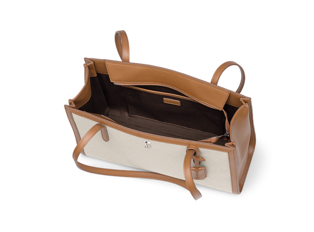 깔끔하고 예쁜 모습입니다. 캔버스 소재로 캐주얼한 느낌을 주면서 브라운 색으로 컬러감을 준 것이 이 가방의 포인트입니다. 심플하면서도 포인트가 되어 밋밋하지 않고 캐주얼하면서도 모던한 느낌을 주는 것이 매력포인트입니다.