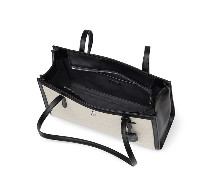 이 가방은 브라운컬러 뿐만 아니라 블랙색상도 있습니다. 브라운 색상과는 또 다른 느낌이죠? 캔버스 소재와 검정색의 컬러감이 캐주얼하면서도 시크한 느낌을 줍니다.