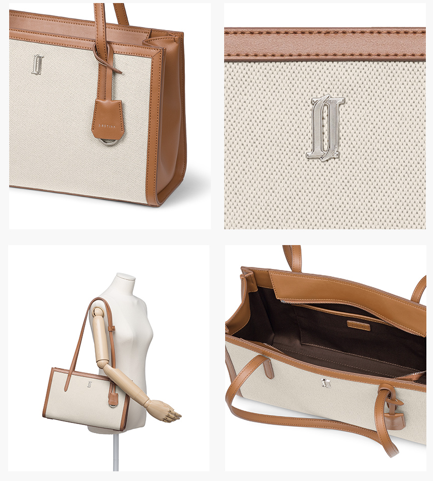 이 가방은 제이에스티나의 마노라인 가방인데요. 마노라인은 심플한 디자인과 은은한 광택감이 느껴지는 소재의 조화를 이루고 있으며 모던하면서도 캐주얼한 분위기를 낼 수 있는 컬렉션입니다. 많은 양의 수납이 가능하며 무게까지 가볍다고 하네요.