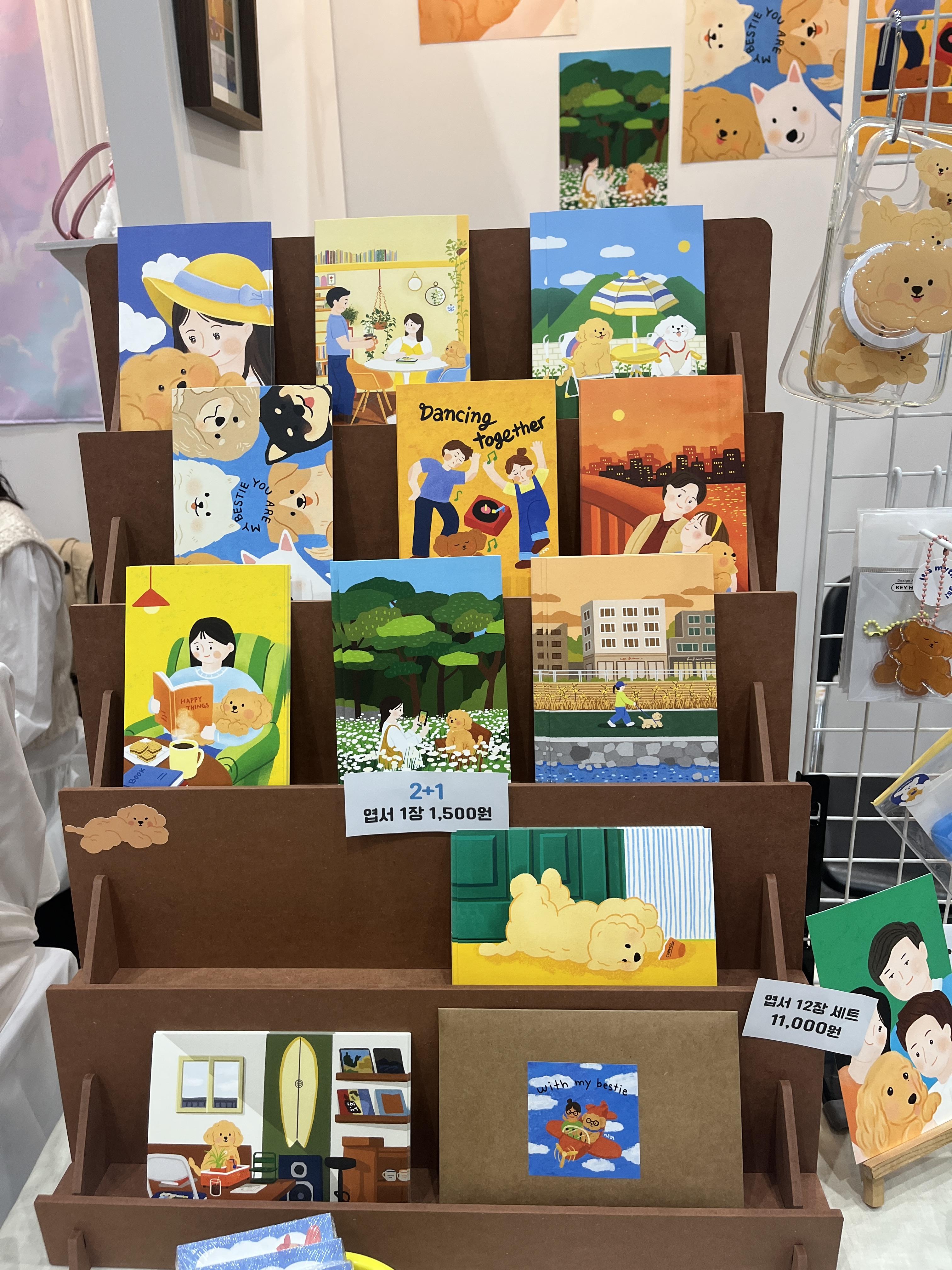 친구가 좋아했던 뚜루루 캐릭터 부스 ㅎㅎ 친절한 작가님, 그리고 예쁜 엽서들, 분위기가 애니메이션처럼 몽글몽글 너무 좋았다.