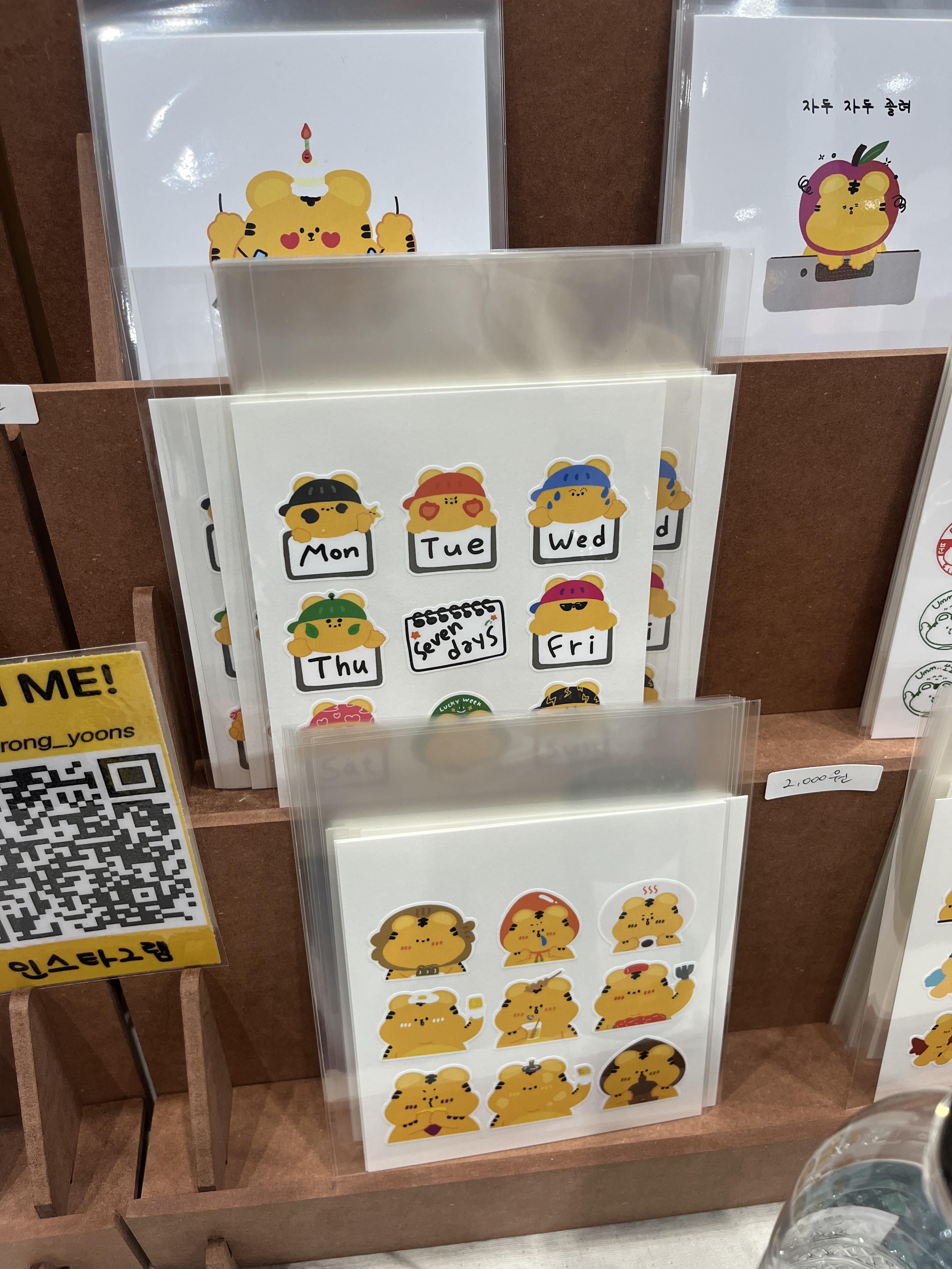 얘네는 너무 귀여웠던 호랑이 캐릭터ㅠㅠㅠ 진짜 넘 귀여워서 저기 아래에 놓여있는 호랑이 스티커를 구매했다. 캐릭터가 스토리까지 있어서 더 사랑스러웠던 ㅠㅠ 작가님도 정말 너무 친절하시고 사랑스러우셨다ㅠㅠ💛
